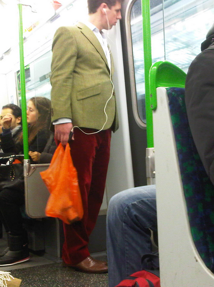 Many thanks to Leigh for this one. Apparently getting his mate to stand in the shot wasn't an entirely successful ruse. Said the red-trousered man on finishing his call (who we can only assume has grown six inches since he bought this pair) "I hope you got a good one, you cunt!" Good enough matey, good enough.